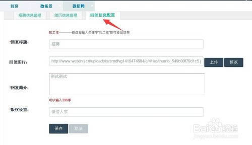 5,设置简历信息管理,设置回复信息设置,内容设置好之后,保存。