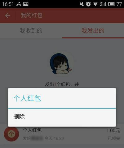 2.长按要删除的红包记录,点击【删除】。