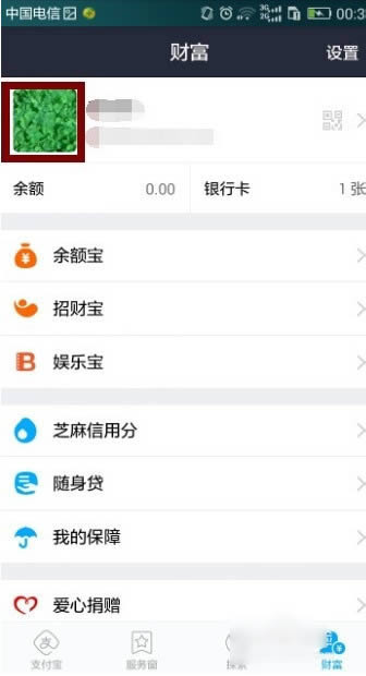 2、进入支付宝钱包主页面后,点击右下脚<财富>