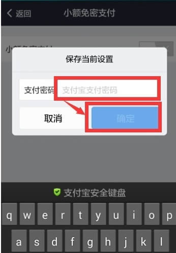 7、输入支付宝<支付密码>,点击<确定>,设置完毕