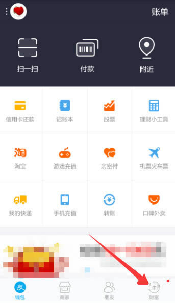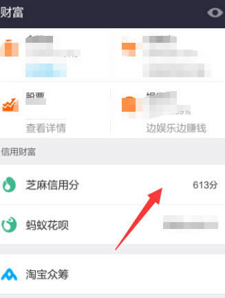 进入财富界面,点击【芝麻信用分】选项