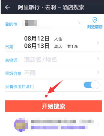 进入搜索界面,输入我们需要住宿的酒店具体要求,点击【立即搜索】