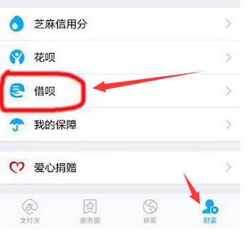 财富这一项这里,就能看得到借呗,这就是一个借钱的工具。看到此项就可能借钱。如果没有可能是你的信用值不够才会这样的。