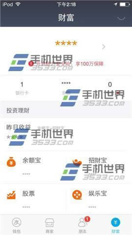 1)打开【手机支付宝】,进入首页后点击【财富】按钮。(如下图)