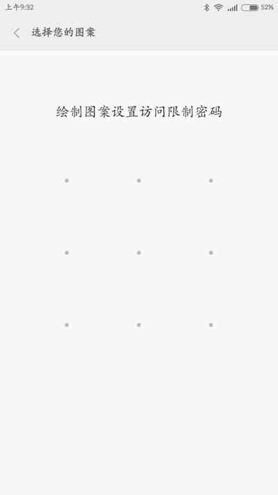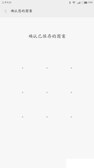 5、第一次设置时,要求我们设置解锁密码,设置好你能记住的图案密码,再输入一遍确认,然后点击确认