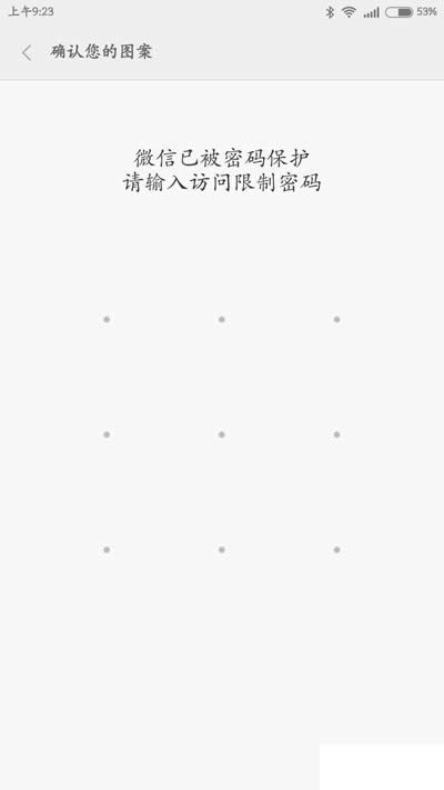 8、设置完成后,我们再打开微信系统会要求你输入刚才设置的图案密码,这样就把微信成功加密是不是很简单。