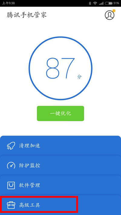 1、打开腾讯手机管家,进入主界面后,程序锁的功能隐藏在下方的高级工具中,所以我们点击下方的高级工具