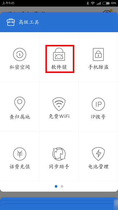 2,在高级工具功能中,我们可以找到一个叫做【软件锁】的功能,我们点击进去
