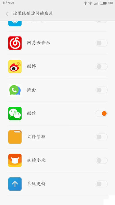 对于小米手机用户我们直接使用MIUI中内置的访问限制即可,开启访问限制后你可以针对每个应用设置密码锁,轻松解决微信加密的问题,而且还不会影响其他应用的使用,下面是详细步骤。