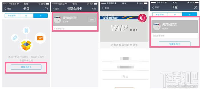 点击【领取会员卡】,会显示可能领取的会员卡列表,点击【领取】就OK。