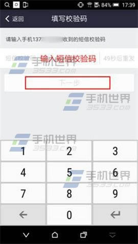 6)输入手机的短信校验码,点击【下一步】,点击【确定】。(如下图)
