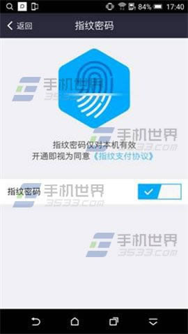4)输入支付宝帐号及密码并【登录】,开启【指纹密码】。(如下图)