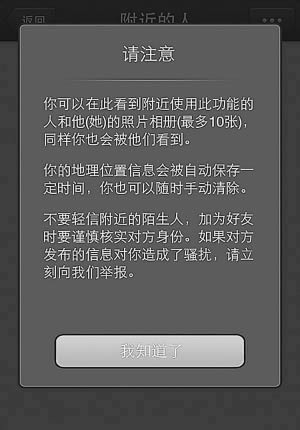 温馨提示:只要“摇一摇”就能让你和陌生人搭讪,这正是“微信”中的一个功能,这个很危险!这些智能软件中“暗藏危机”,很容易把个人信息泄露出去。这个要注意!在设置-隐私-朋友圈权限里有个允许陌生人看十张照片的开关,请关掉它。