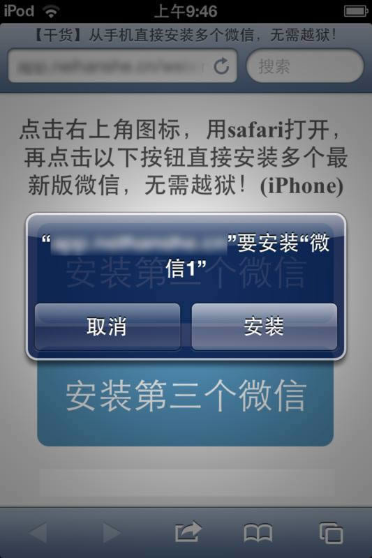 带上我们之前从APP Store上下载的,就是3个了,我们先点击安装第二个微信,之后会弹出如下界面: