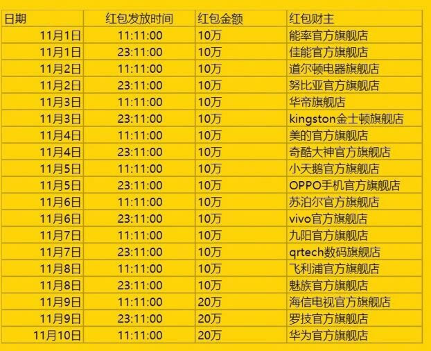一、天猫电器城2015双11支付宝口令红包活动时间: