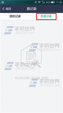 4、选择【负面记录】栏就可以查看到了。