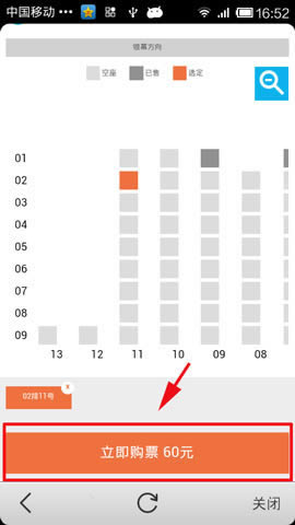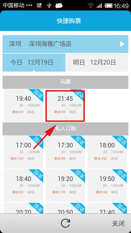 3)选择好省份地区和时间后,然后选择影片名和放映时间,再选择座位。