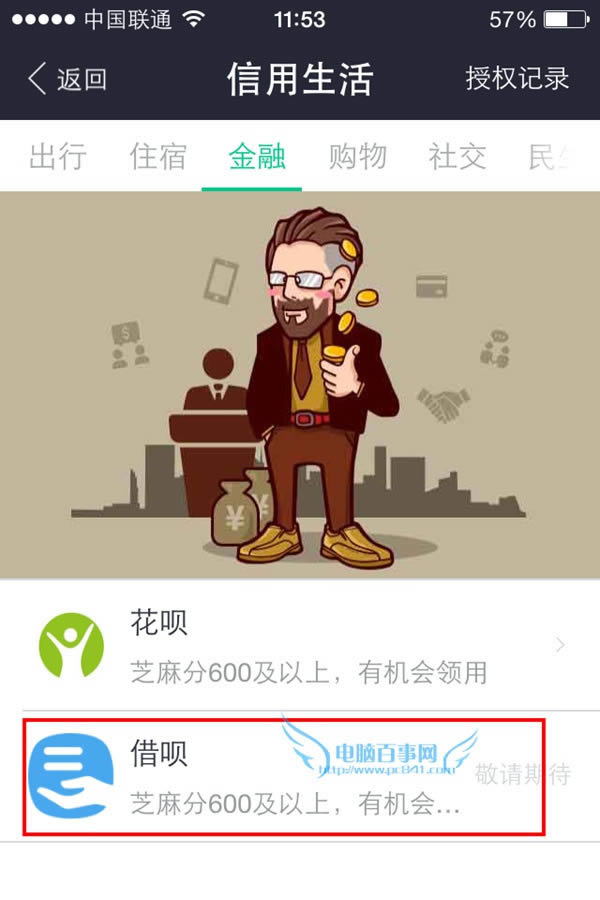 *注: 如果您在手机端登陆支付宝,没有看到借呗开通位置,则说明您的芝麻信用分没有达到600分以上以及没有更新支付宝钱包到最新版。