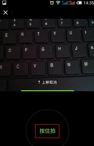 4、纪念日拍摄界面后用手指触摸长按“拍摄键”,手指往上移动可以取消拍摄。