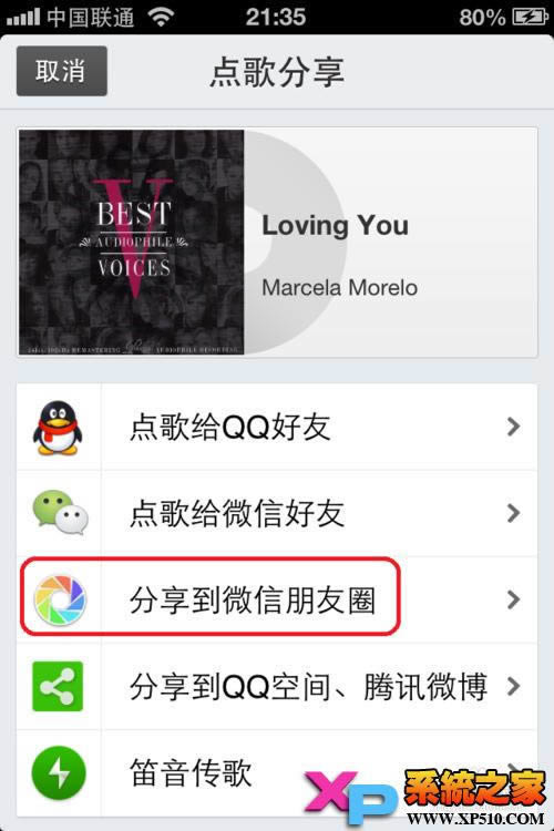后面的操作和之前的方法一样,就可以实现在微信朋友圈分享音乐了。