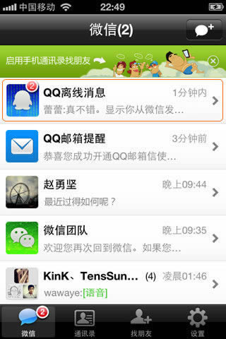 1、如果您的QQ处于离线状态时,有QQ好友给你发送QQ消息,消息就会被送到微信的QQ离线消息插件。