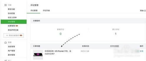 8、接着我们再返回微信公众号平台管理页面中,在评论管理里可以看到当前已经有评论数据了,如图所示