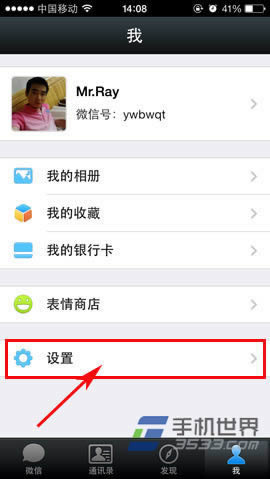 1)首先要下载微信5.0.3以上版本。然后点击进入,在主界面点击“我”后再点击“设置”。(如下图所示)