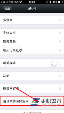 2)进入微信“设置”后点击“通用”就,然后就能看到“清理微信存储空间”按钮了。(如下图所示)