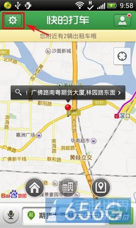 1)首先打开快的打车软件,进入首页,点击“设置”按键。(如下图所示)