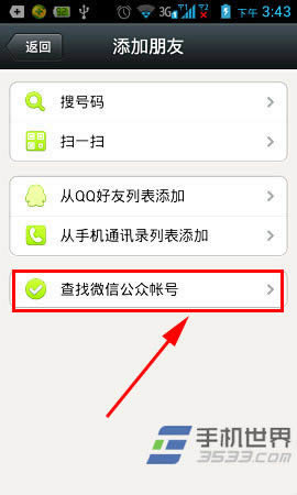 1)打开微信软件(微信版本4.5.1),以QQ电影票为例,在微信主界面定位到“朋友们”选项卡页面,然后点击“添加朋友”,再次点击“查找微信公众帐号”,在搜索框内搜索“QQ电影票”,在搜索结果中关注QQ电影票。