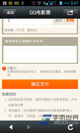 4)输入QQ帐号和密码后登录QQ电影票,填写接受兑换票的手机号,然后点击“确定支付”按钮,此时界面会自动跳转到财付通支付界面。在支付界面输入财付通账户和支付密码(不是财付通登录密码),然后点击“选择支付方式和优惠券”按钮选择支付方式,完成相关支付即可。