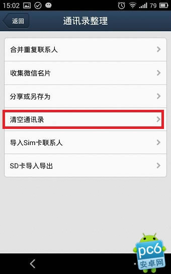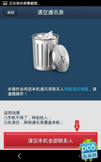 6、点击下方的“清空本机全部联系人”,这里要谨慎操作。小编的手机倒是无所谓,早就云端备份好数据了,清空了可以随时恢复过来,也建议大伙记得备份一下。