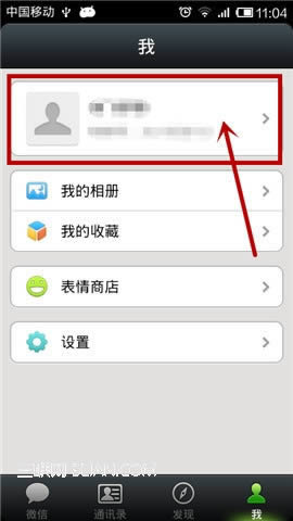 1) 打开微信5.0,进入【我】界面,点上面【我】的设置(如下图所示)。
