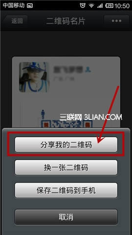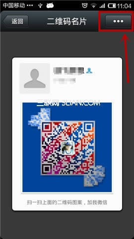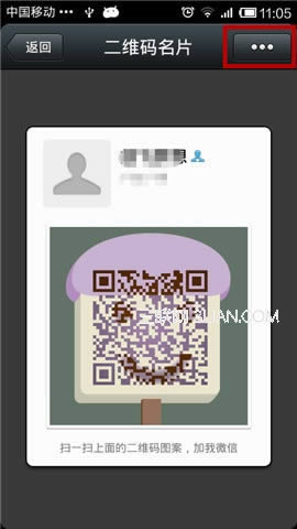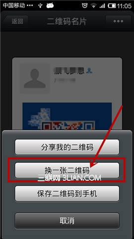 3)弹出对话框,便可以可看到【换一张二维码】。回到二维码名片中就可看到换新的二维码图了。再次点击【三点】看看如何分享二维码(如下图所示)。
