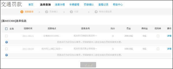 温馨提示: 点击【详情】可查看具体违章信息。