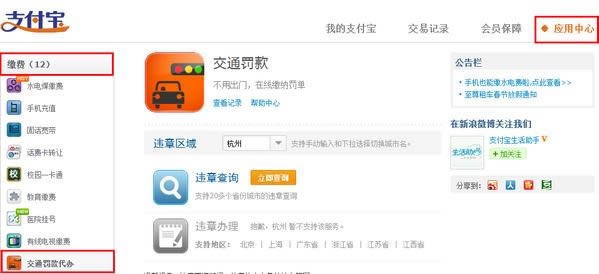 1、打开www.alipay.com登录支付宝账户——应用中心——点击【交通罚款代办】www.xiding99.com;