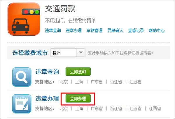 2、点击违章办理右侧的【立即办理】;