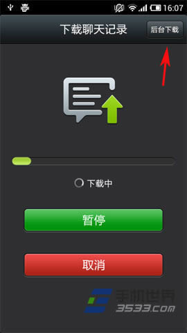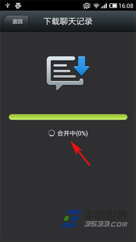 5)点击下载后,大家只需要静静的等待其下载并合并完成即可(PS:如果需要操作其他,可以点击右上方的“后台下载”进行切换也行)。这样,自己的微信聊天记录就可以从一台移动设备迁移到多台移动设备上了!(如下图所示)