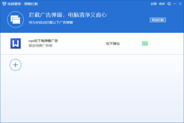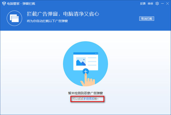 拦截添加就完成了,下次就不会再弹出广告了。如下图所示: