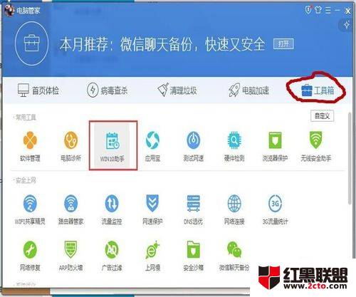 安装成功之后,来到【工具箱】选项卡,点击下方的【win10助手】,即可进入。