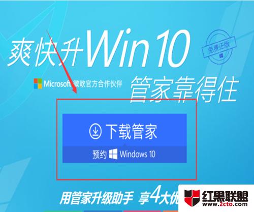 进入之后,点击“下载电脑管家预约win10”链接,下载安装包。