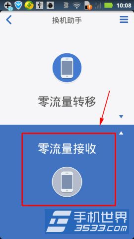 4)接下来看看“零流量接受”,打开“零流量接受”,就会出现等待另一部手机发送资料的界面。