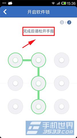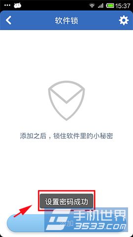 3)再次重复输入刚才的图案密码,出现设置密码成功,即可点击添加你要锁住的软件了。