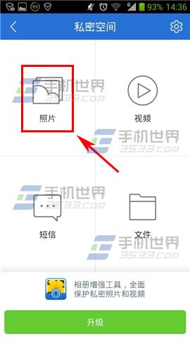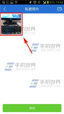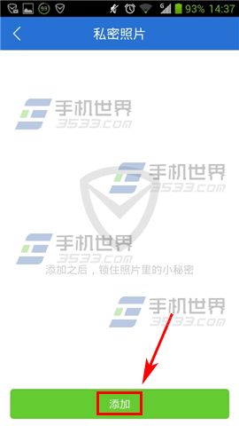 3)这里可以对【照片】【视频】【短信】【文件】进行加密,小编此处以【照片】为例,选择【照片】,然后点击下方【添加】。(如下图)