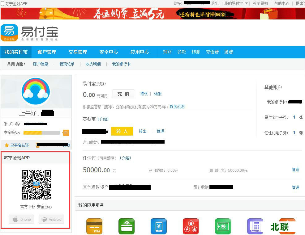 (易付宝个人主页,苏宁金融APP官方扫码下载位置详情图)