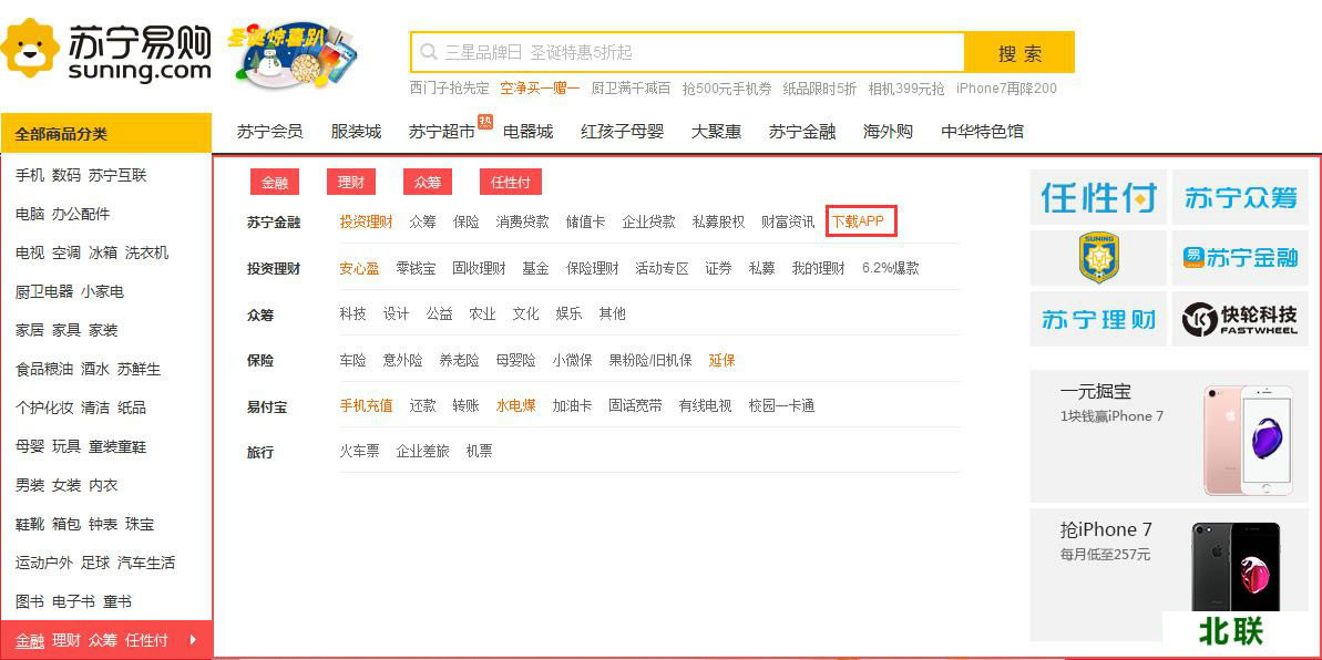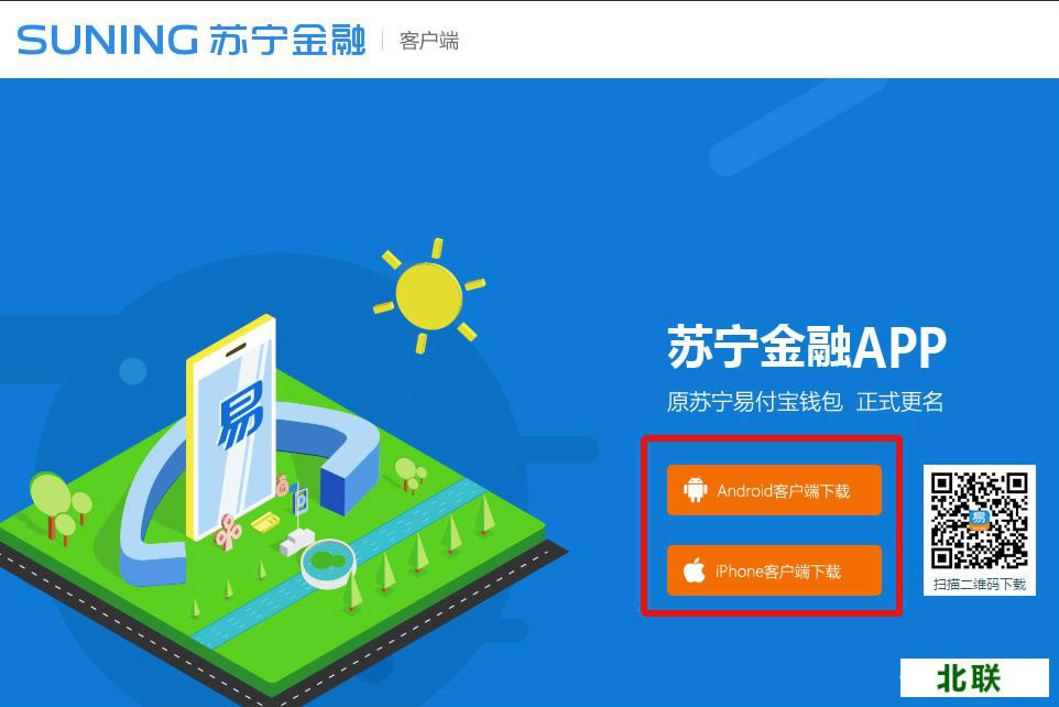 三、易付宝钱包官方网址 (苏宁金融APP官方下载网址在苏宁易购主页的快捷入口位置图)