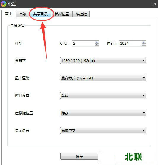 2、点击“设置”后在弹出的窗口顶部打开“共享目录”,如下图所示: