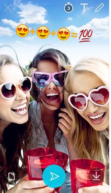 · 照片或视频拍摄完成后,可继续添加“文字”、“卡通贴纸”,“涂鸦”功能,为作品锦上添花!