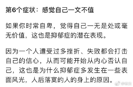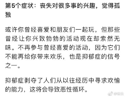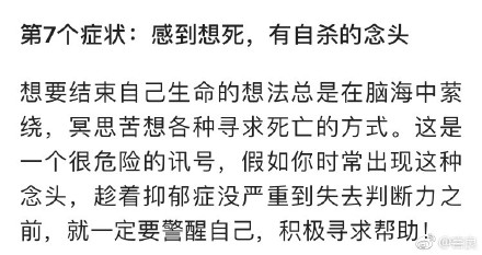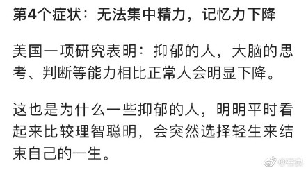 大家都中了几枪?调查显示,抑郁症已成为世界第四大疾病,我国抑郁症患者达3000万人。睡眠差,心情压抑、焦虑、悲观失望,谁都可能和抑郁症不期而遇。了解关于抑郁的种种,开展#抑郁症测试#,别让“心理感冒”变成“心理癌症”,转给你关心的身边人~