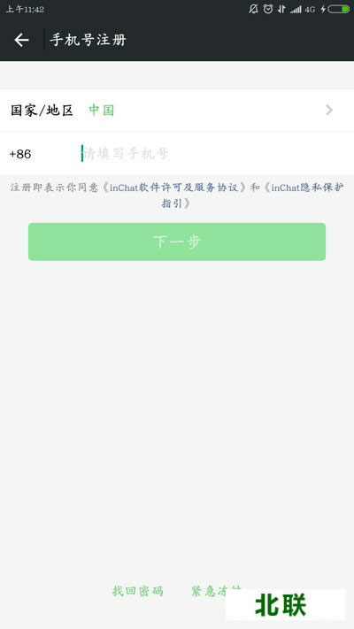 一会功夫,安装便告完成。选择打开inCaht,进入登录及注册界面: